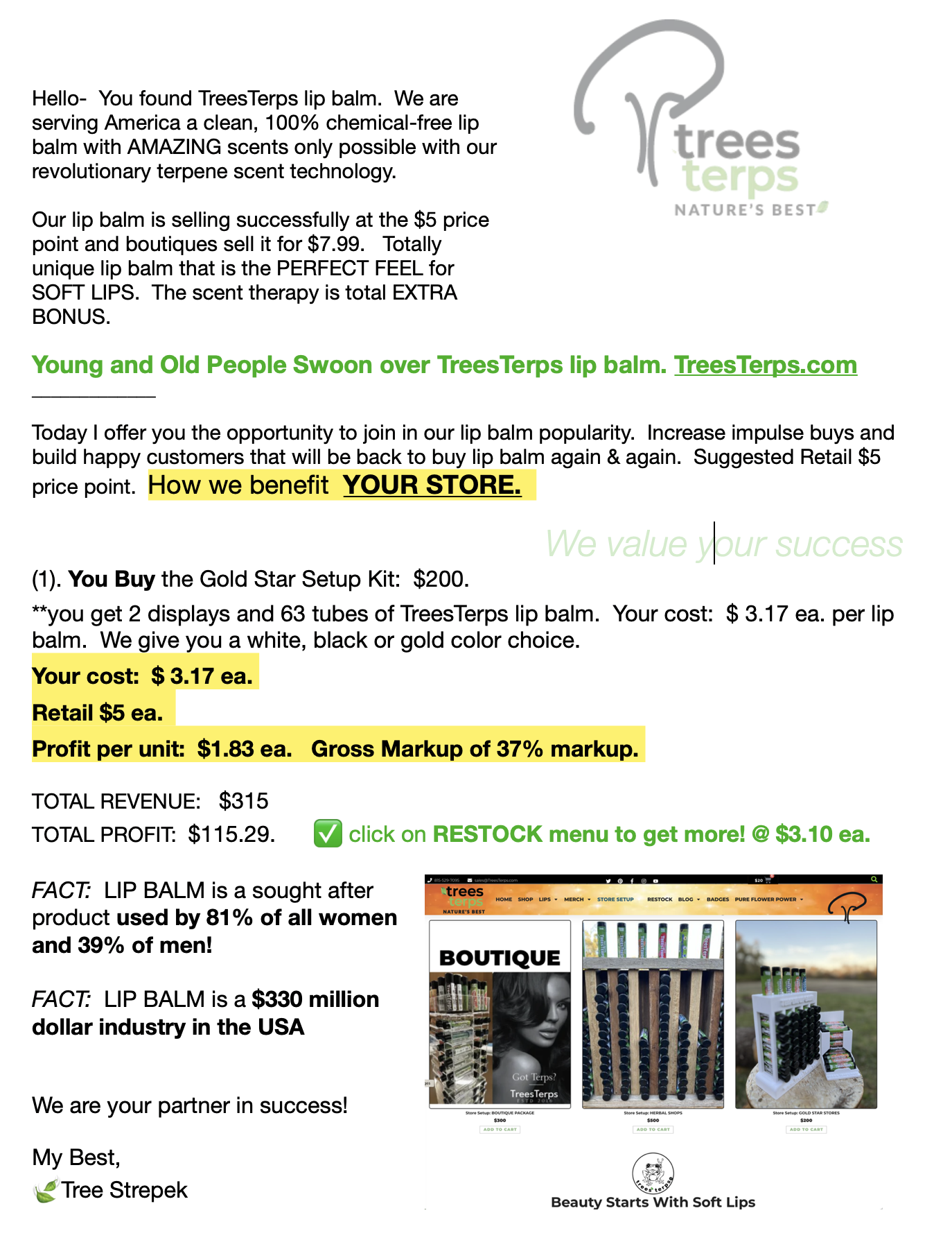 Hello- we are here to Boost Your Confidence! We are Healthy Lip Balm committed to purity since 2016. Super popular due to smooth-silky texture, satisfying finish that leaves soft, kissable lips for hours. Our product will blow your sox off. Customers will return to your store just to buy this lip balm. This is every day lip luxury everyone can afford. Pamper your People. Beauty starts with soft lips!